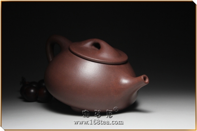 【本款说明】此款“景舟石瓢”下大上小呈三角形的石瓢形,周身皆以圆弧线条构成,嘴、把、的处处衔接自然流畅,线条利落明确,起承转合交待清楚。出水圆润有力,壶身饱满,有端庄古朴之意 。下以三圆足支起全身,使壶显得挺括有神,沉静而深意隽永。